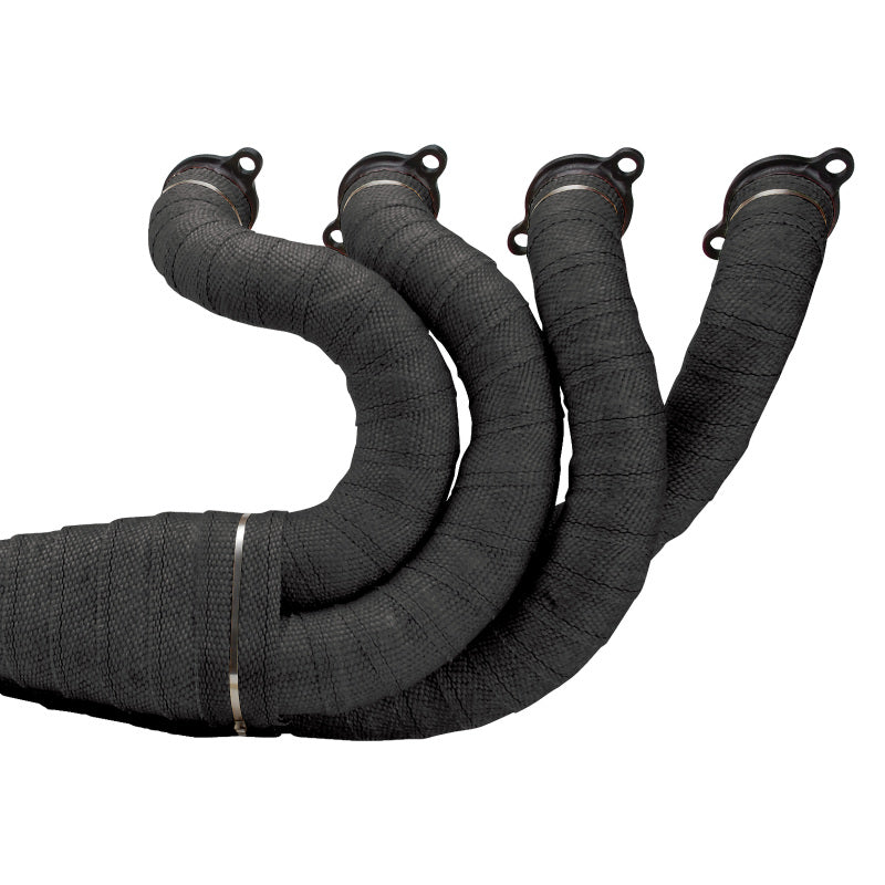 Glass Fiber Exhaust Wraps solve the problem of extreme underhood heat and improve exhaust system performance. Wrapping headers and down pipes is an important first step in reducing unwanted and power-robbing under hood heat. Less under hood heat results in a cooler air charge for improved performance and keeping exhaust gases hotter within the exhaust system helps in decreasing exhaust density & increases exhaust flow. Design Engineering Stainless Steel Locking Ties are the perfect way to fasten exhaust wrap for a easy, clean and professional installation. Reduce under hood temperatures a realistic 50% Decreases exhaust density & increases exhaust flow Improves horsepower Withstands 1200°F direct/2000°F radiant Only exhaust wrap with installation guide lines Added durability and heat retention NOTE: Catalytic Convertors: Wrapping of the catalytic converter is not recommended, as overheating can lead to reduced lifetime of the converter. Instead, try our Corvette Catalytic Converter Shield or create your own shield using our Floor & Tunnel Shield II(TM). Removal: Exhaust wrap is not designed to be moved or removed after it has been heat cycled. After the fibers have been heated, they lose their initial flexibility. This does not reduce the thermal properties of the exhaust wrap. Be aware of this before you decide to remove the wrap. For this reason, you should avoid wrapping any flex-pipes or flex-joints. Titanium Exhaust Pipe Systems: DEI does NOT recommend wrapping exhausts made of titanium. The alloys used in the production of titanium exhaust systems tend to be thin and are designed to dissipate heat quickly. Wrapping any titanium exhaust pipe, regardless of brand, can hold in too much heat, and make the titanium alloy turn brittle and prone to premature cracking. If you are seeking to reduce the heat on a titanium exhaust system, DEI recommends using alternatives such as our flexible heat shields.